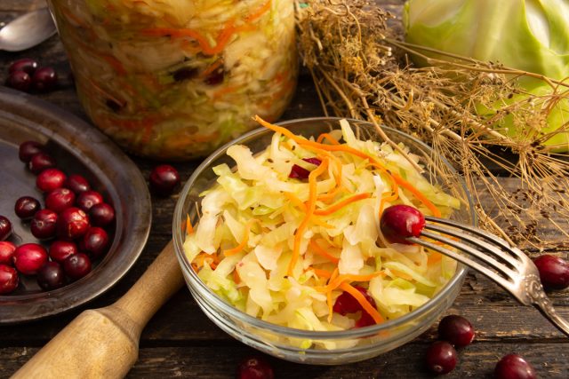 Квашеная капуста с клюквой и укропом в феврале: хруст в квартире без погреба за 5 дней