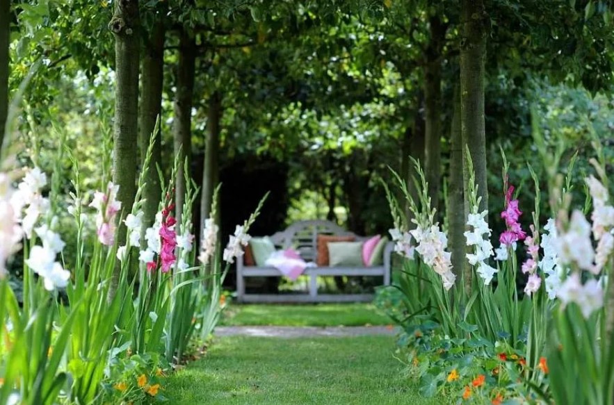 Сажать гладиолусы в тень. Без 6+ часов солнца цветоносы будут тонкими и ломкими. Только открытые солнечные места.