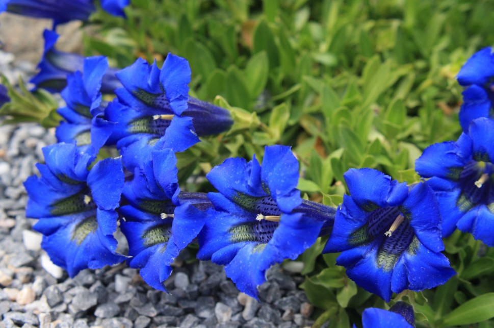 Китайская горечавка образует аккуратный пушистый кустик диаметром около 30 сантиметров. Её ярко-голубые цветки с белой полоской по центру выглядят особенно нежно на фоне зелени. Жёлтая горечавка — полная противоположность: высокая, до полутора метров, с множеством мелких жёлтых цветков. Идеальна для заднего плана цветника или вдоль забора. А весенняя горечавка — самая ранняя: уже в мае расцветает синими или белыми цветочками, хотя ростом всего 5 сантиметров. Зимует при температуре не ниже минус 26 градусов.