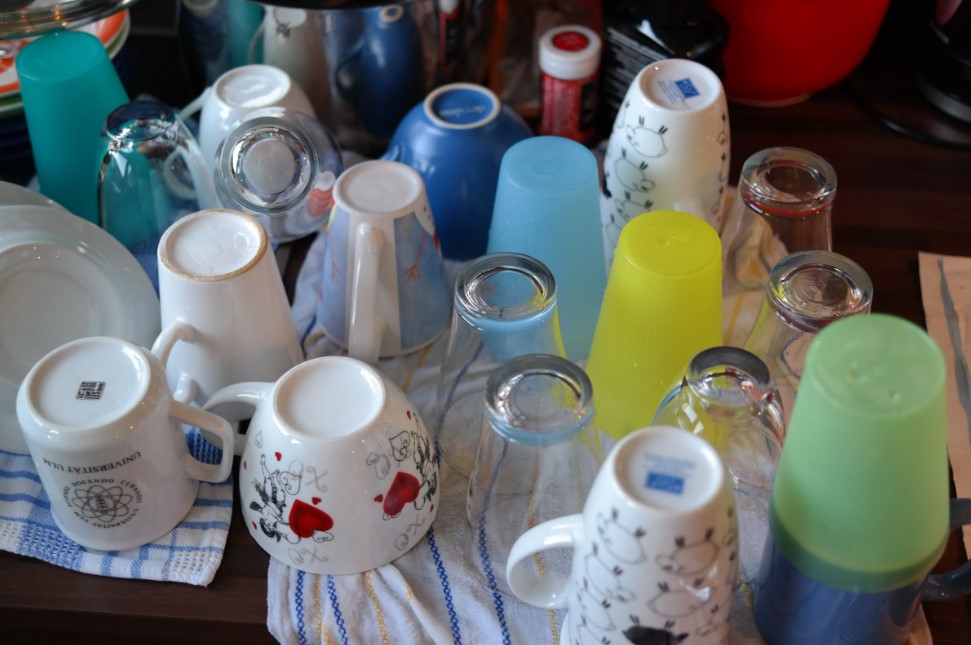 Воздух циркулирует — запаха нет. Влажность в закрытых шкафах создаёт среду для плесени и затхлого запаха. Если чашки стоят горлышком вверх, воздух внутри застаивается. Перевернутое хранение обеспечивает лучшую циркуляцию: посуда «дышит», а периодическое проветривание шкафов устраняет застоявшуюся влагу.