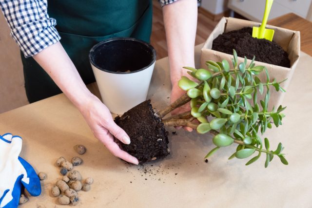 Пересадка — раз в год в свежий грунт для суккулентов.