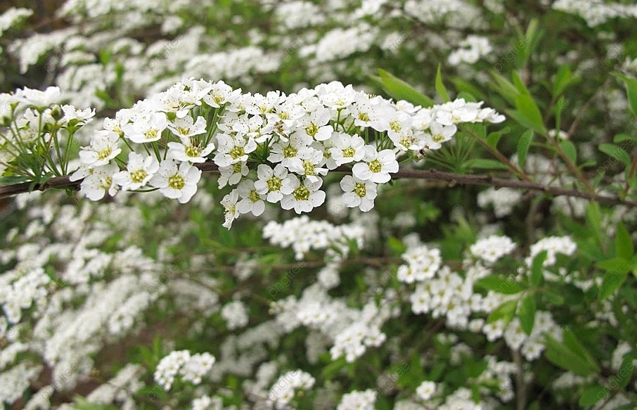 Спирея серая «Грефшейм». Её называют «белой невестой»: в мае куст покрывается снежной шапкой цветов. Подходит для живых изгородей, не требует сложной обрезки.