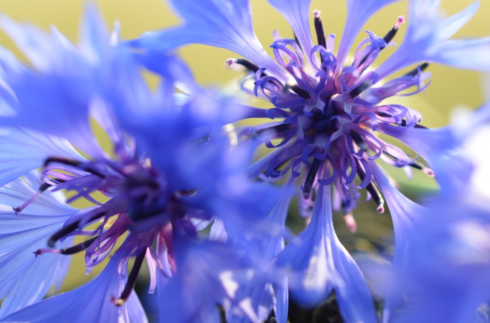 - Васильки — романтичные синие, белые или розовые цветки на тонких стеблях. Сеют на глубину 1 см, интервал 15–20 см. Всходы — через 10–14 дней, цветение — через 8 недель. Устойчивы к засухе, привлекают бабочек.
