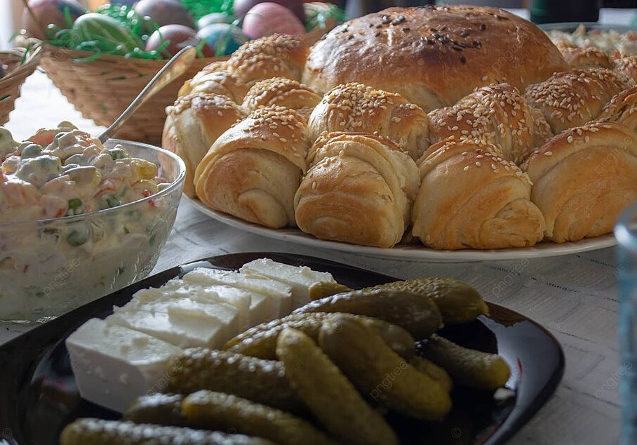 Традиционно первыми на пасхальном столе появляются освящённые куличи, творожные пасхи и крашеные яйца. Эти символы праздника не просто украшают стол — они знаменуют окончание поста и единение верующих в радости о Воскресении.