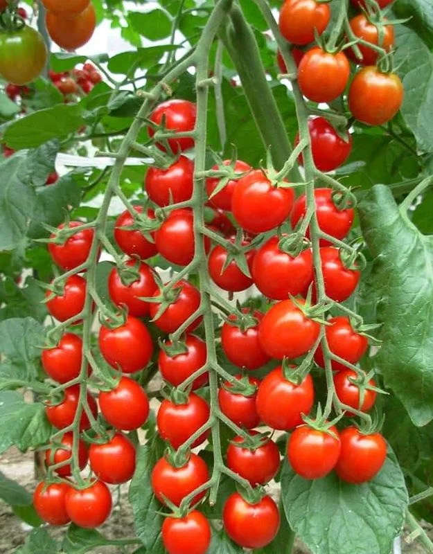 Рекордная завязываемость плодов обеспечивает урожайность до 16 кг/м² при благоприятных условиях. Идеально круглые ярко-красные помидоры весом 25–30 г отличаются тонкой, но прочной кожицей и насыщенным ароматом. Вкусны в свежем виде и в заготовках.