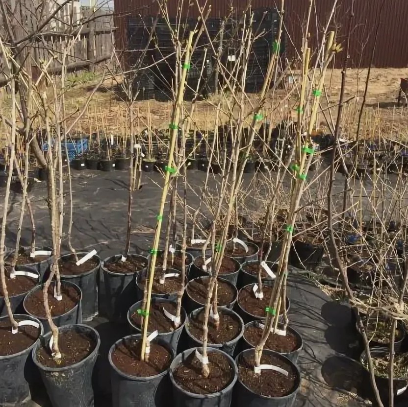 Саженцы с закрытой корневой системой (ЗКС) в контейнерах приживаются быстрее и раньше вступают в плодоношение, но стоят дороже. Важно убедиться, что растение действительно выращивалось в контейнере: если его легко вынуть из горшка — вероятно, его пересадили недавно.