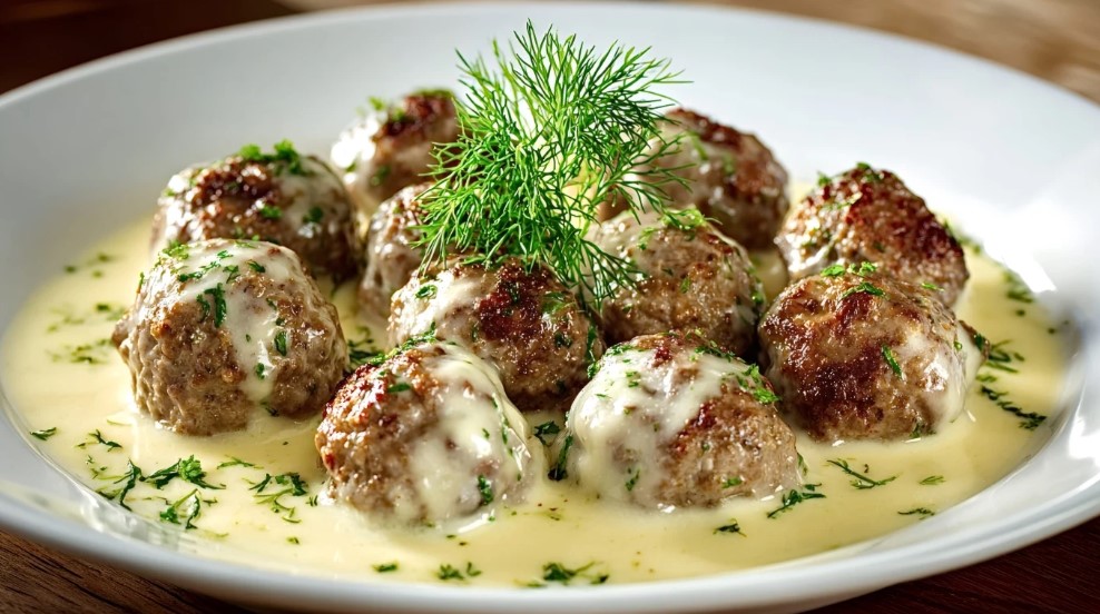 Свиной фарш даёт жирность и сочность, говяжий — насыщенный вкус. Хлеб с молоком удерживает влагу внутри, а короткая жарка сохраняет текстуру. Соус на основе ру (мука + масло) создаёт ту самую «бархатность», за которую любят скандинавскую кухню.