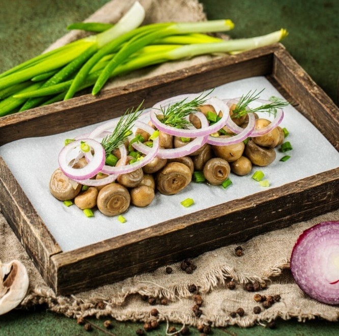 Почему именно этот рецепт — хит новогоднего стола? Никакого уксуса — кислинку даёт лимонный сок: мягче, свежее, без «резкости». Хруст — до последнего кусочка: шампиньоны обжариваются, а не варятся — поэтому не разваливаются и не «плывут». Готовы за вечер — маринуются всего 2–3 часа (но можно и дольше — вкус только усилится). Сочетаются со всем: под шампанское, к мясу, в салат или просто с хлебом.