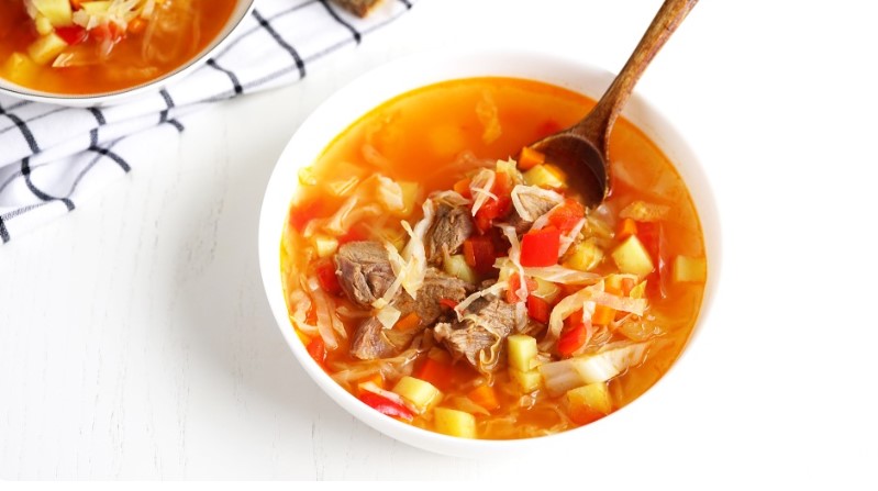Это густые, почти кашеобразные щи, где жёсткая капуста не проблема, а основа. Благодаря долгому томлению в мясном бульоне она смягчается до нежности, горечь уходит, а вкус — становится глубоким, насыщенным, с лёгкой кислинкой и дымком.