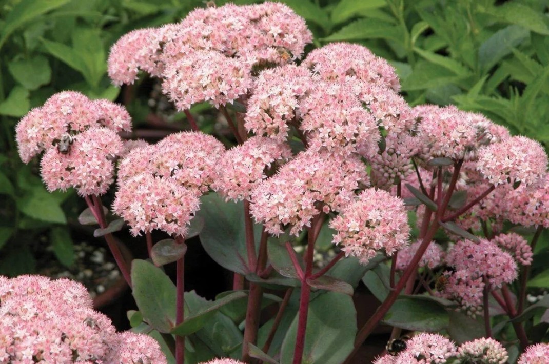 А в августе начинается главное. На верхушках стеблей появляются плотные, почти шаровидные соцветия нежно-розового цвета. Они держатся до глубокой осени — часто даже после первых заморозков. Букет из такого очитка простоит в вазе больше недели, не теряя свежести.