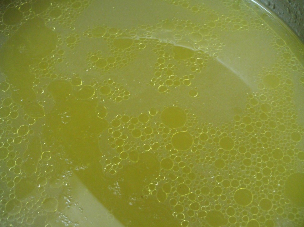 Готовый бульон процеживаем, остужаем. На поверхности застынет жирный слой — его можно снять (и использовать потом для жарки — он очень ароматный) или оставить, если нужна калорийность.