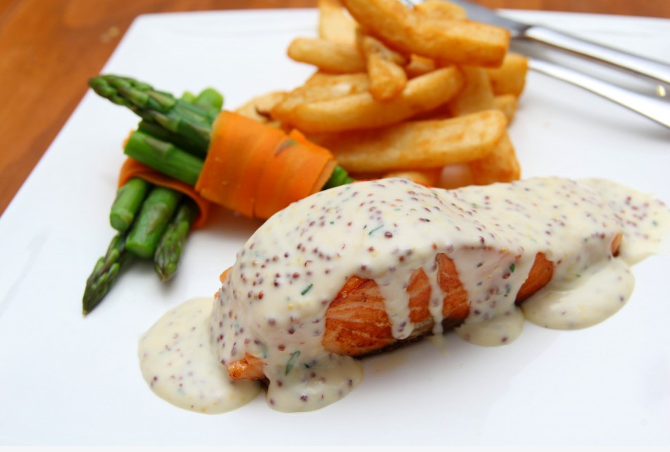 Блюдо отлично сочетается с отварным рисом, картофельным пюре или просто с лёгким салатом из зелени. А самое приятное — никакой возни и жира: всё готовится в духовке, а соус делается за 5 минут, пока лосось доходит.
