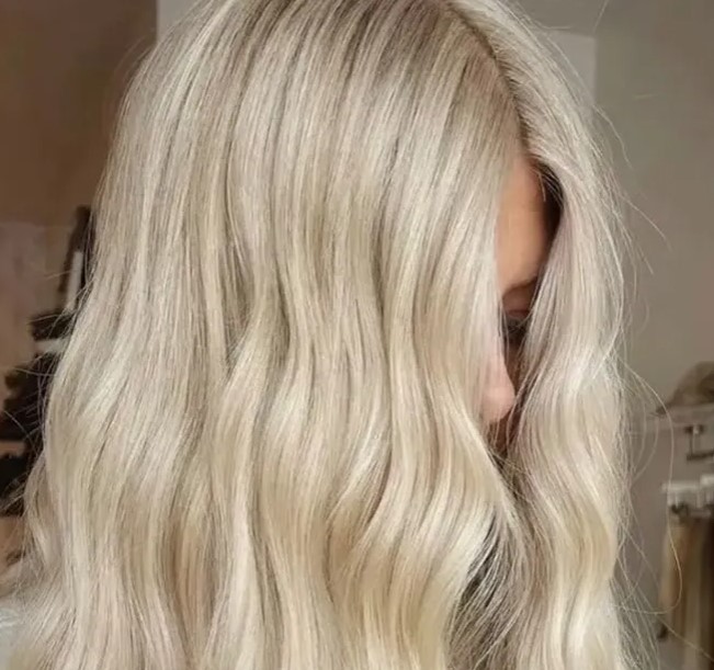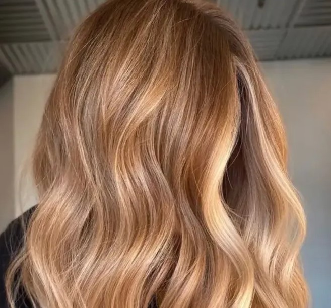 Медовый блонд — как солнечный луч на снегу. Светлее карамели, с лёгким янтарным отливом. Отлично смотрится на средних и длинных волосах, добавляет объёма и легко обновляется: корни можно просто затемнить — и эффект «свежеокрашенной» остаётся.