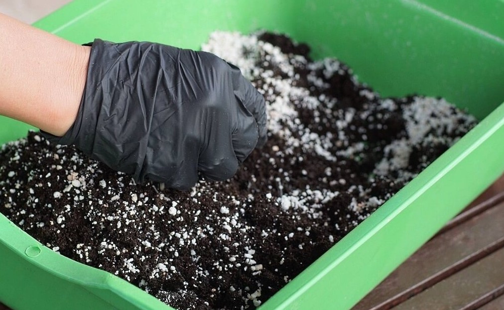 Если дерновой земли нет, заменяю её на кокосовый субстрат — но с двумя важными условиями. Во-первых, его обязательно нужно заливать кипятком перед использованием: так убиваются споры грибков и личинки грибных комариков. Во-вторых, кокосовый субстрат почти не содержит питательных веществ, поэтому я добавляю в него немного разведённого биогумуса (1 столовая ложка на литр воды) прямо при замешивании.
