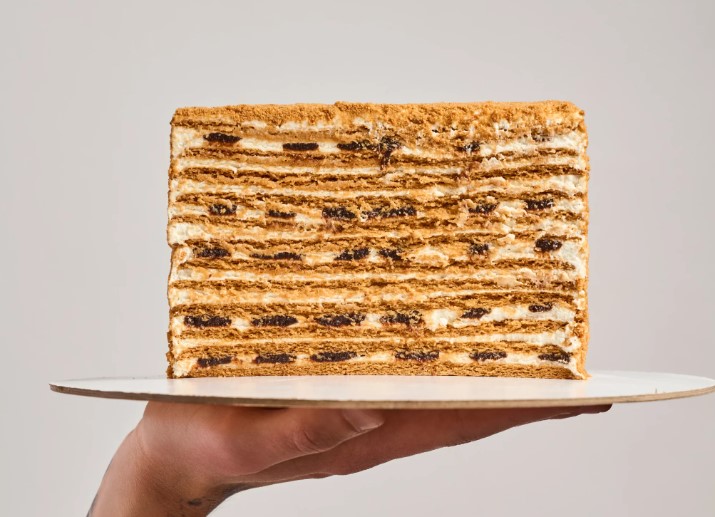 Медовый торт с черносливом — коржи мягкие, крем нежный, а аромат карамели сводит с ума! Готовится за 1 час