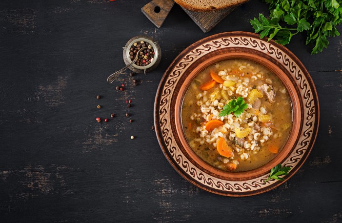 Секрет в смеси круп: перловка остаётся основой — она даёт насыщенный вкус и характерную плотность. Рис делает бульон мягче и чуть кремовее, а пшеница добавляет объём и сытность. Вместе они превращают суп в настоящий обед без гарнира — при этом каша не образуется, и блюдо не теряет своей лёгкости.