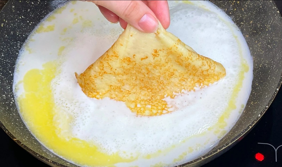Казалось бы, что нового можно придумать с блинами? Но этот простой лайфхак переворачивает всё представление о привычном десерте. Всё, что нужно — обычные тонкие блины и горячее молоко. Опускаешь их на минуту в кастрюлю — и получаешь невероятно нежный, сливочный, сочный десерт, который буквально тает во рту.