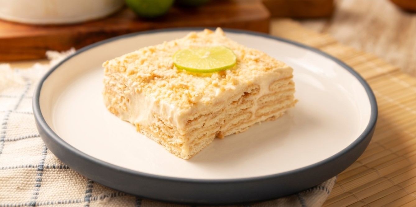 Основа — простое песочное печенье или сладкие крекеры. Крем — из сгущённого молока и свежего сока лайма. Всё это укладывается слоями, немного охлаждается — и готово! Никакой сложной техники, никаких рисков, что «не взойдёт» или «опадёт». Просто смешал, собрал и поставил в холодильник.