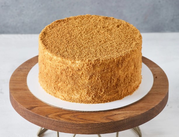 Остывший корж разрежьте на три или четыре части. Промажьте каждый слой кремом, сложите стопкой. Обмажьте бока и верх, посыпьте крошкой из обрезков. И вот здесь главное — не спешите. Уберите торт в холодильник минимум на четыре часа, а лучше на ночь. Именно во время отдыха медовик становится тем, чем должен быть: мягким, сочным, буквально тающим во рту.