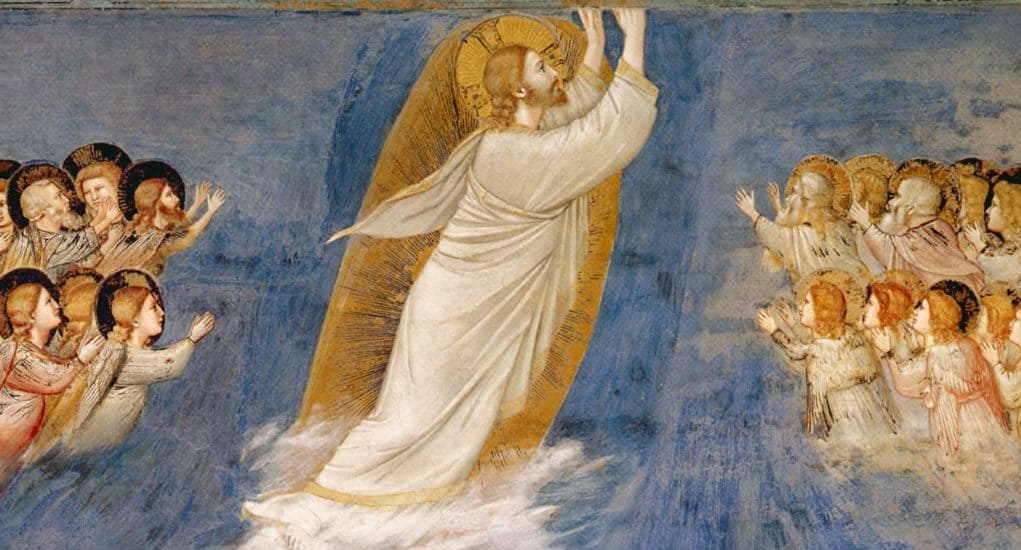 Согласно Евангелию, после Воскресения Христос сорок дней являлся ученикам, наставлял их и укреплял в вере. А затем привёл апостолов на Елеонскую гору, благословил их и начал возноситься к Отцу. Облако скрыло Его из виду, и лишь обещание о пришествии Духа Святого утешило учеников.